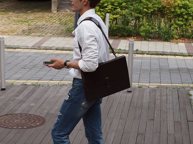 ビジネスシーンやプライベートのシーンなどあらゆる状況に合う洗練されたデザインが特徴です。また、オリジナルのショルダーストラップを使うことで両手が自由になります。