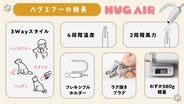 ふわっとやさしい風に包まれて、撫でる手のぬくもりが伝わる──HUG AIRは、乾かすを“楽しい”に変える小さな魔法。