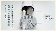 髪や細い被毛の巻き込みを防ぐ二重高密度フィルター、温度ヒューズ・サーモスタットなど温度過昇を抑える安全機構を採用。フィルターはマグネット着脱で“サッと外して、詰まった抜け毛をサッと取り、サッと戻せる”お手入れ性に加え、テスコムがプロ用ドライヤーで長年培った厳しい品質基準と安全性に加え、ペット用ならではの工夫や基準をクリアさせるために1年以上の試行錯誤の期間を経て開発いたしました。