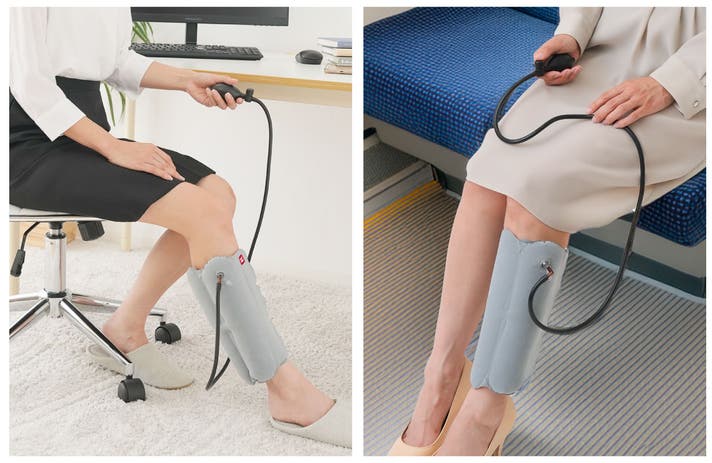 - STEP1:エアーポンプで膨らませて、むぎゅ~とふくらはぎを圧力ケア!お好みの圧に調節できる!