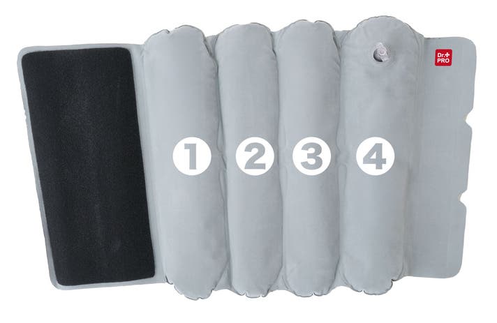 面ファスナーで簡単にサイズ調整ができ、①~④の空気層を備えたシンプルな構造。男性でも女性でもぴったりとフィットしやすく、心地よくお使いいただけます。