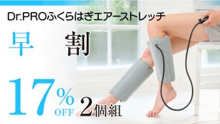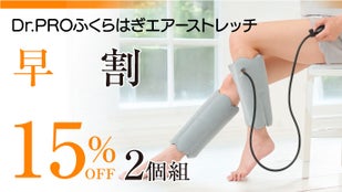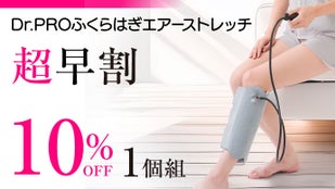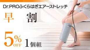 お一人でも多くの方に「Dr.PRO ふくらはぎエアーストレッチ」をお得にご使用頂きたく、先着順ではございますが【超早割】もご用意させていただきました!割引率は2個組で最大20%OFF♪この機会に是非お求めください。