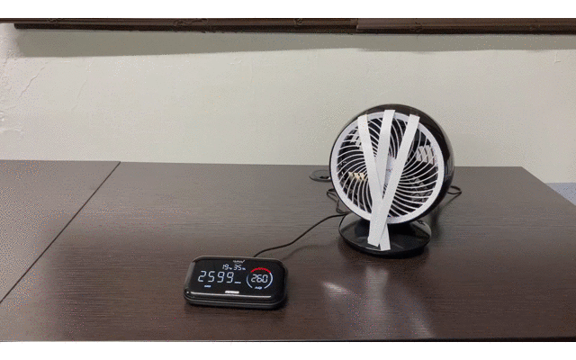 CO2の濃度が高くなり部屋の空気が「密」状態になったら自動でサーキュレーターや換気扇を回す。