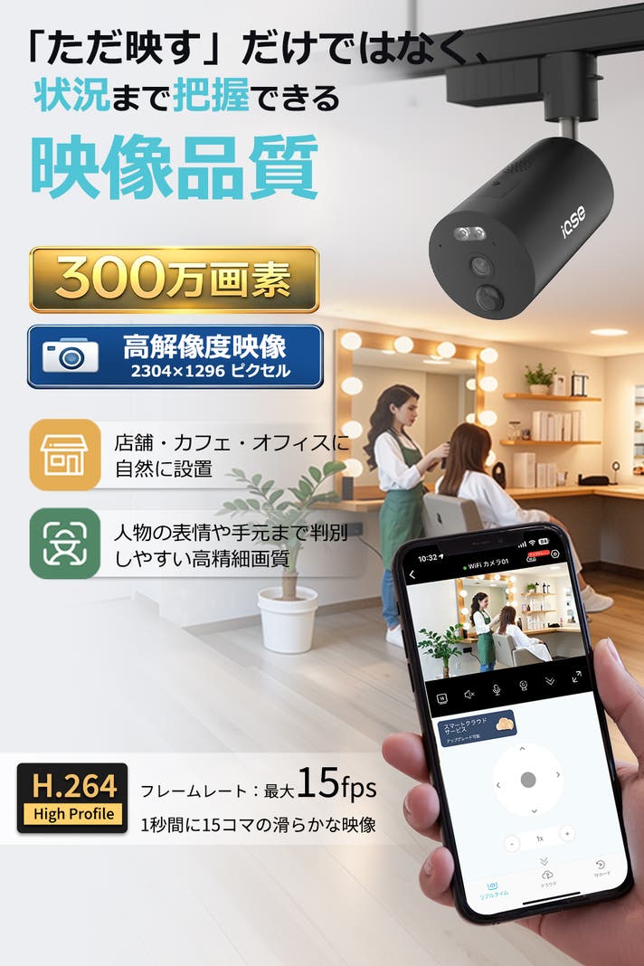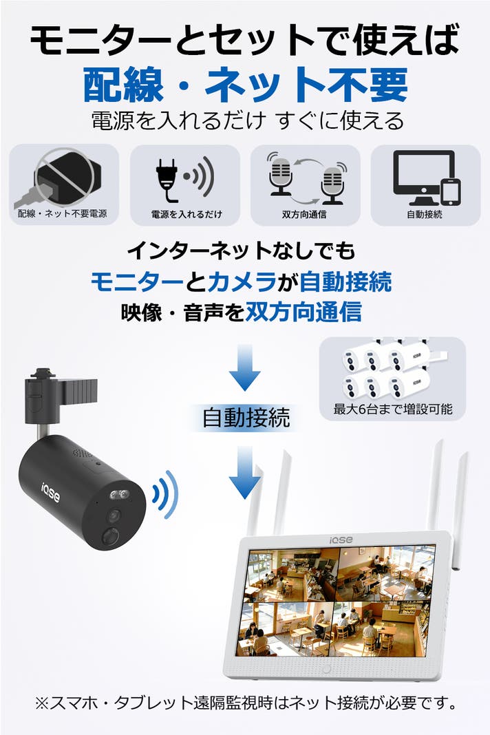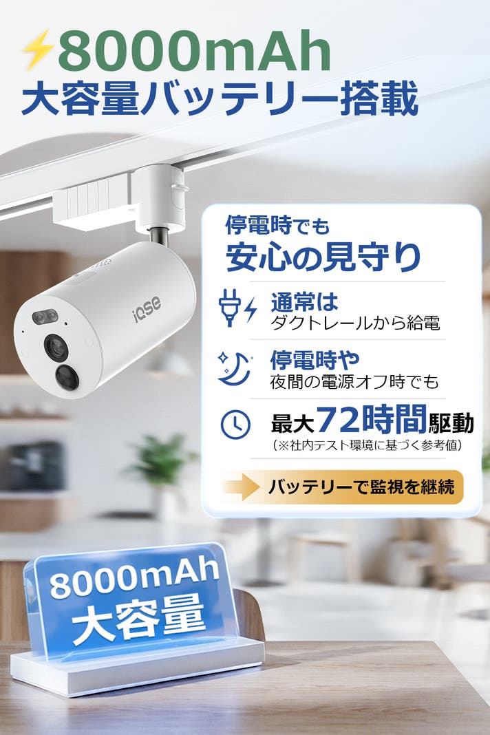 - 停電時でも見守り継続 、8000mAh大容量バッテリー内蔵