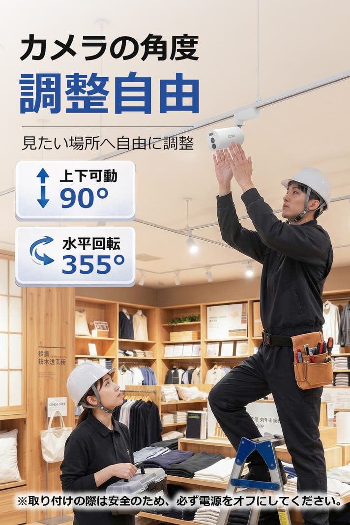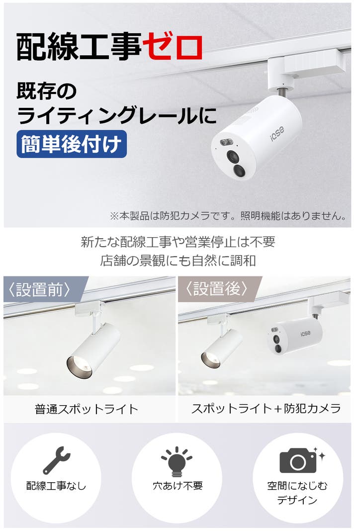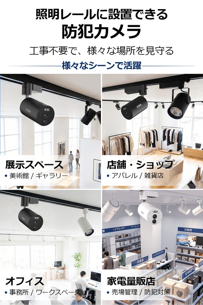 防犯カメラ(単品)3台 |照明レール対応で広くカバー
