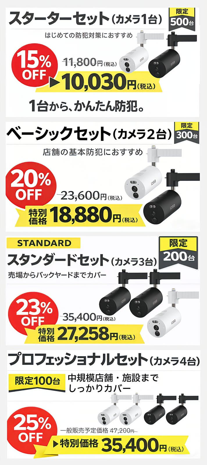 防犯カメラ(単品)4台|プロセットで本格防犯