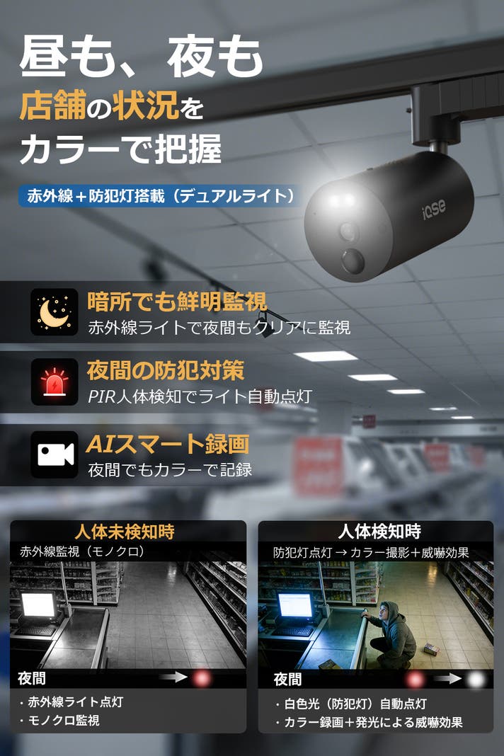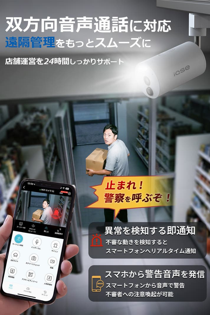 - 人体検知&音光威嚇で侵入を未然に防止