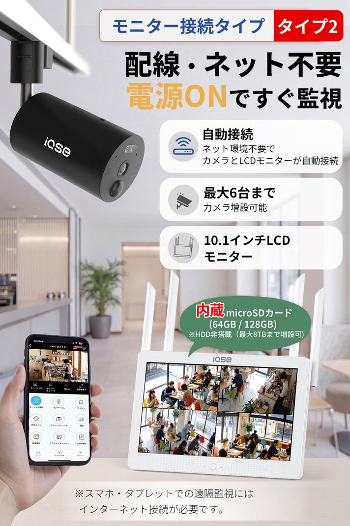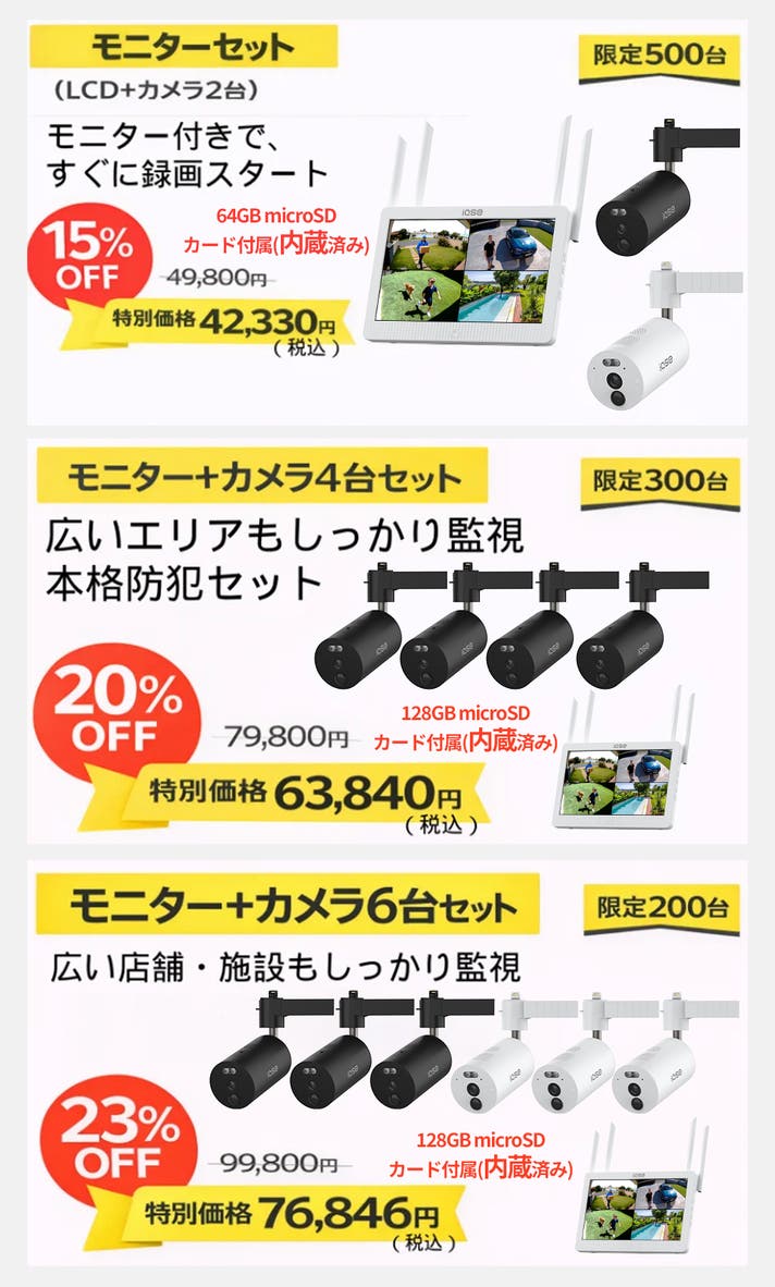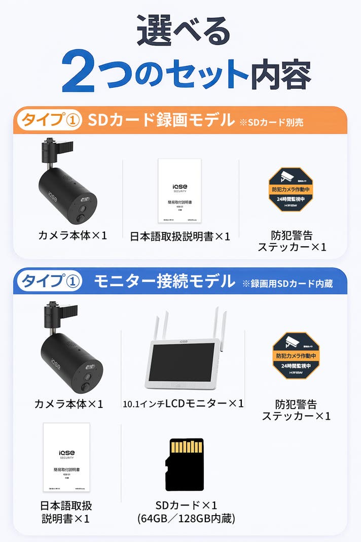 【お得なセット】防犯カメラ2台セット+LCDモニター1台