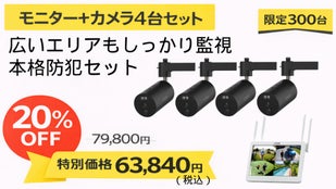 【プレミアムセット】防犯カメラ4台セット+LCDモニター1台