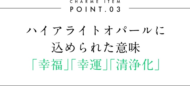 ハイアライトオパールには、「幸福」「幸運」「清浄化」という意味が込められており、"幸福を運ぶ石"と呼ばれているぐらいなんです!