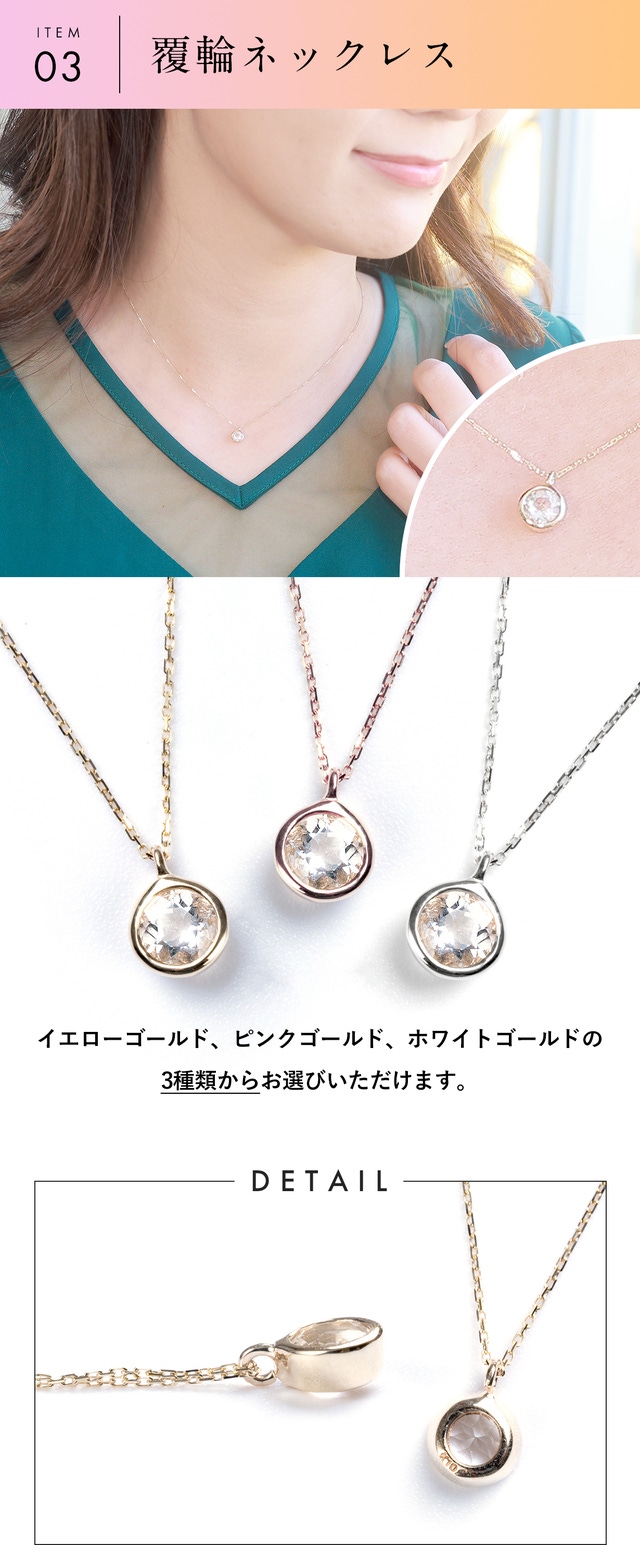 鑑定歴34年の熟練バイヤーが発見し、厳選した宝石を使った、10金のジュエリーです。金の資産価値だけではなく、末永く愛用できるよう、デザインのバランスを考えた程よい大きさの宝石を使い、洗礼されたデザインにしております。
