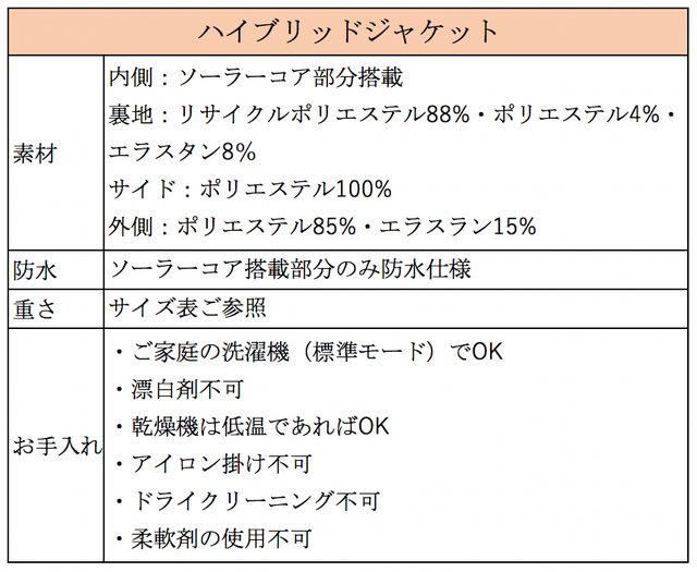 (ここに映っているのは前プロジェクトのORION PARKAです。ハイブリッドジャケットにも部分的にソーラーコアが同様に使用されています)