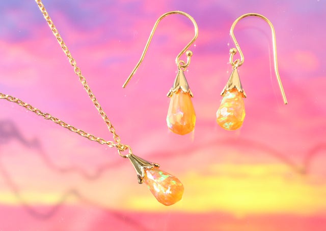 プロジェクトでは、クリエイテッドオパールの原石をしずく型に多面カットしたブリオレットカットのオパールをご案内いたします。