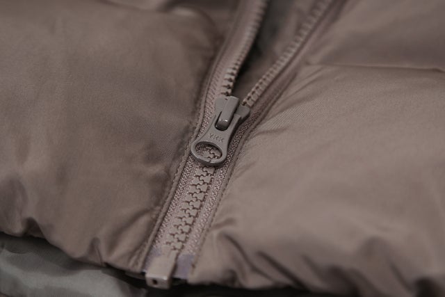 キルトが表にないので、着ぶくれ感のないスッキリしたデザインです。裾部分はゴム入りで冷気の侵入を防ぎます。
