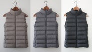 レディース ダウンベストは①チャコール・②モカ・③ブラックの3色です。