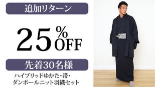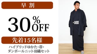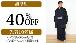 【早割30%OFF】ハイブリッドゆかた・帯・ダンボールニット羽織セット