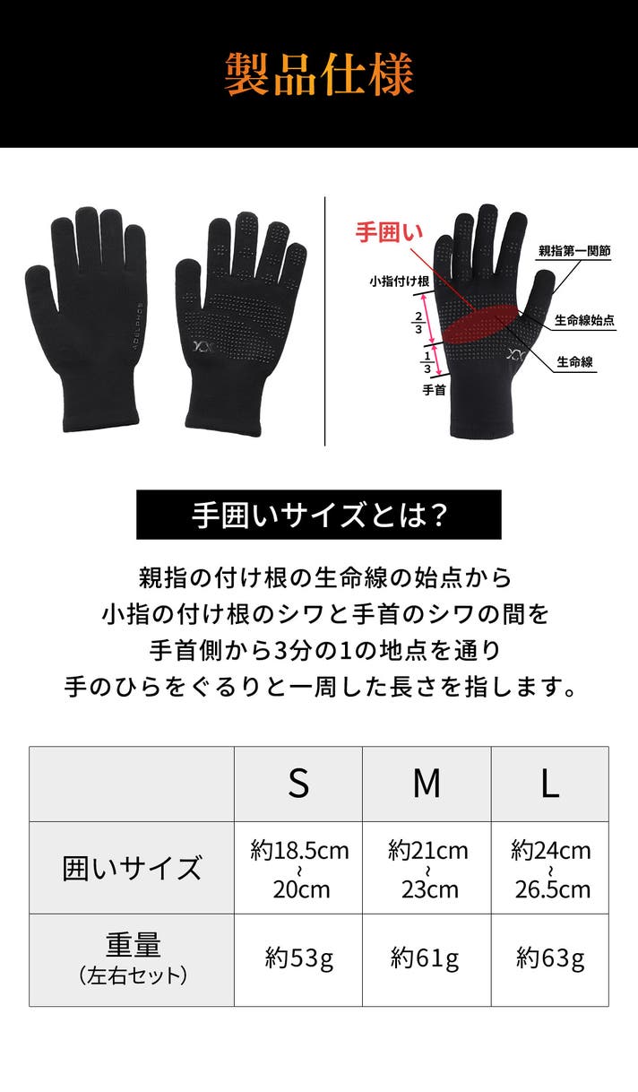 Lサイズ:24~26.5cm 手の比較的大きい男性