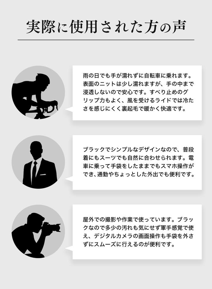 - 豪雨でも手袋を外さずにスマホ操作ができる