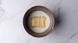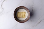 濃厚な大豆と軍鶏のヴルーテカッペリーニ仕立て