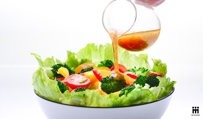 当社は非加熱製法でドレッシングを製造しています。熱を加えないことで、フレッシュな香りやシャキシャキとした食感、じゅわっと口の中広がる果汁のジューシーさをお楽しみいただけます。