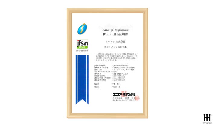 当社は、2024年3月にドレッシングについて「JFS-B規格」の適合証明を受けた工場で品を製造していますので、安心してご賞味ください。JFS規格とは一般財団法人 食品安全マネジメント協会(JFSM)が運営する国際標準に整合した食品安全マネジメント規格です。