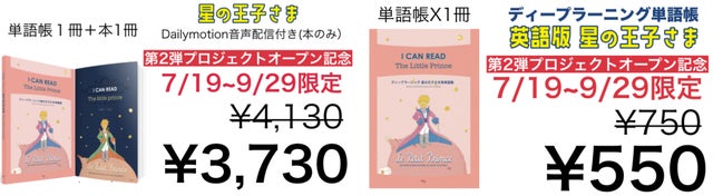 今回のプロジェクト期間中に限り『星の王子さま』の紙本と単語帳を限定価格にてご提供致します。『Sleeping BeautyとHappy Prince』のプロジェクトを見てこれいいかも?と思って頂けた方へ今回だけの特別企画です。どうぞお見逃しなく!!