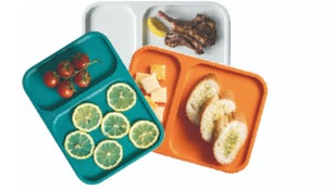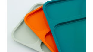 ネイチャーカラーにまとまりがちなアウトドアの食事シーン。それに、丸い食器ばかりだと、大人数の食事では、テーブルの上がうまく収まらないことも・・・。