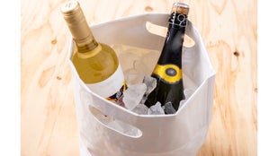 食器セット(定価7,980円)と、中に氷を入れてワインやシャンパンボトル、缶ビールなどを冷やせるだけでなく、水汲みバケツとしても使えるバゲッグ(予価1,480円。Makuake終了後、一般販売開始予定。下記写真)を、一般販売に先駆けてセットにしました。別々に購入いただくよりもトータルで10%オフとなります。