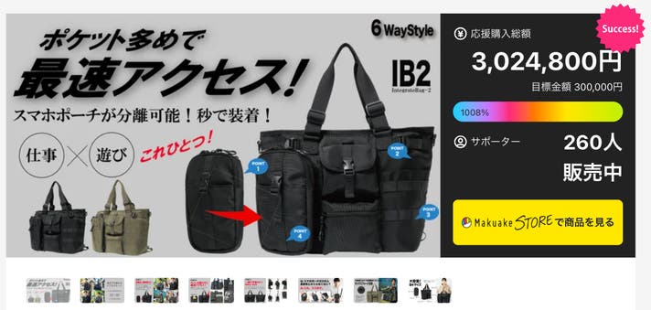 Makuake Storeで販売中の大人気商品「最速アクセスバッグ」IB2