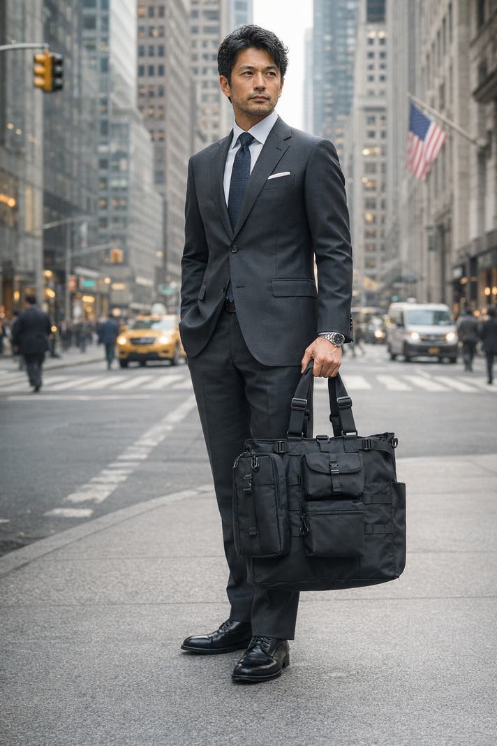 ビジネススーツにも映えるデザインだからそのまま打ち合わせの場にも使えて無駄のないシームレスな旅支度を実現!