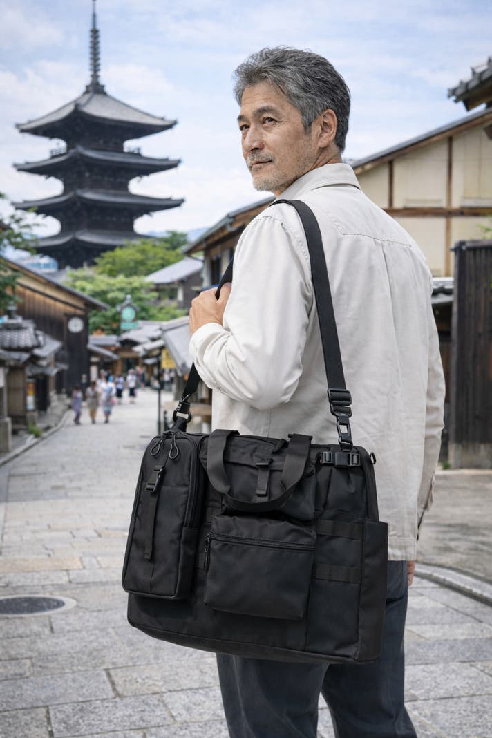 普段使いのビジネスバッグが思い立って出かける「ちょい旅」用のバッグにも!近場の温泉や新幹線に飛び乗って古都への小旅行。さあこのバッグなら手軽に気軽にあなたの行動力も無限大!