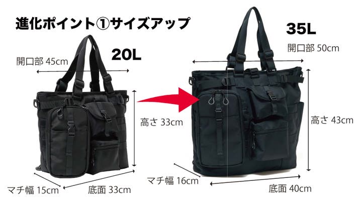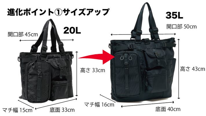 - 前回大人気の「最速アクセス」バッグがさらに大容量化(35L)して再登場!