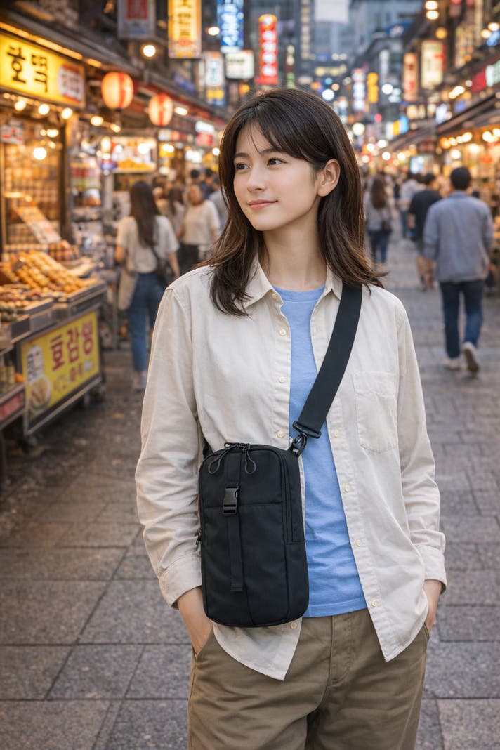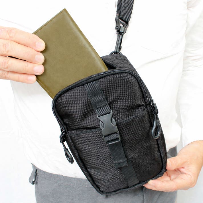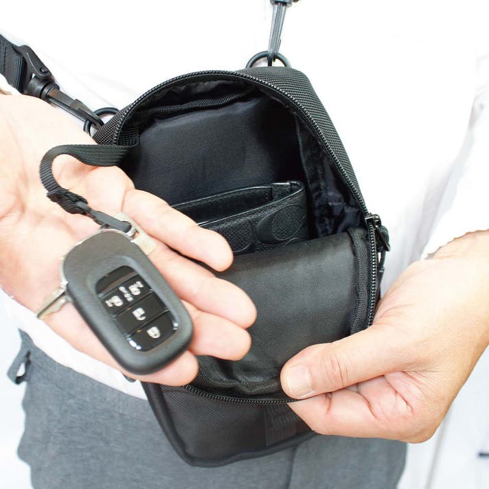 本体バッグからマルチポーチを分離して持ち運べるので、スマホや財布などの貴重品だけを入れて気軽に街に繰り出せる。いちいち貴重品を入れ替える手間もないから忘れ物も激減します!