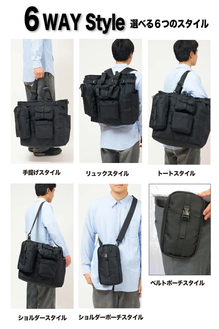付属のベルトを使用すれば4通りのキャリングが可能に。さらにマルチポーチを本体から外してさらに2WAYのスタイルに!貴重品管理がスムーズでちょっとお出かけの機動力が格段にUPします。