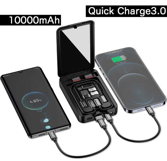 このアイテム一つあれば殆ど全ての種類のコネクターに繋ぐ事ができデータカードなども本体に収納、カードリーダーにもなり、なんと鏡まで!しかしメインは10000mAhのバッテリー!ほんとに凄い!