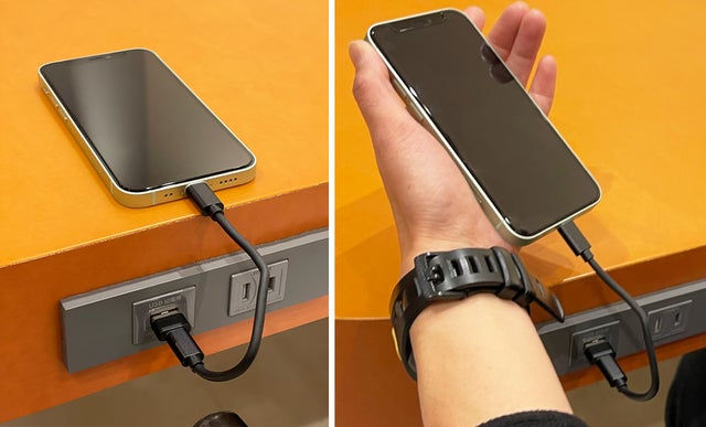 その短いケーブルをカフェやホテル、新幹線などのUSBコンセントに繋いでも、ケーブルが短か過ぎてその場から動けない、操作ができない、なんて事も!