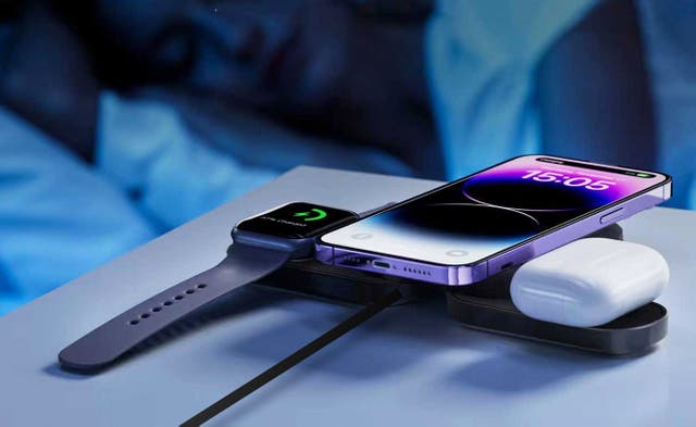 - スマートホン、アップルウォッチ、ワイヤレスイヤホンを同時に楽々充電!他に専用充電器は必要なし!