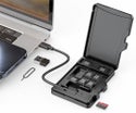 カード収納はもちろん、USBケーブル、変換アダプター、そしてSIMピンも付属し、全て収納可能なのはこの製品の特徴です!microSDカードの収納ソケットは7箇所ですが、側面のカードリーダーソケットを含むと8枚収納可能になります。