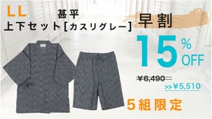 【早割】15%OFF 甚平「カスリグレー」上下1組【限定5組】LL