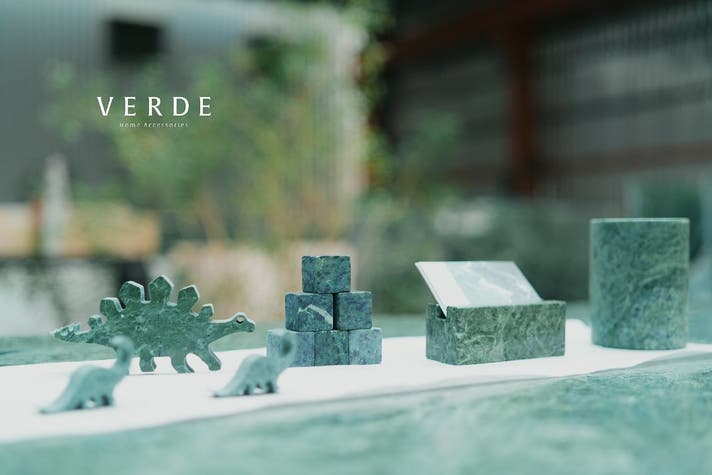 台湾東部・花蓮の山脈から採れる「蛇紋石」は、深い緑色と有機的な模様が美しい天然石で、世界でも限られた地域でしか産出されません。VERDEは鉱山と直接独占的に提携し、採掘からデザイン、製作までを一貫して行うことで、素材の魅力を最大限に引き出しています。蛇紋石は自然が数千万年かけて生み出した贈り物であり、唯一無二の模様や質感は、空間に穏やかな存在感を与えます。私たちはこの蛇紋石の魅力を活かしながら、現代の生活に合うように、暮らしに取り入れやすいインテリアや雑貨としてデザインしました。自然の恵みを日常に取り入れることで、生活に小さな豊かさと心地よさを届ける─それがVERDEの願いです。