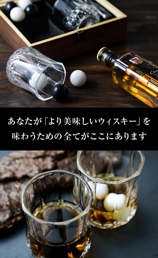 大理石ストーンを入れ、ウィスキーを最大限楽しめるよう、