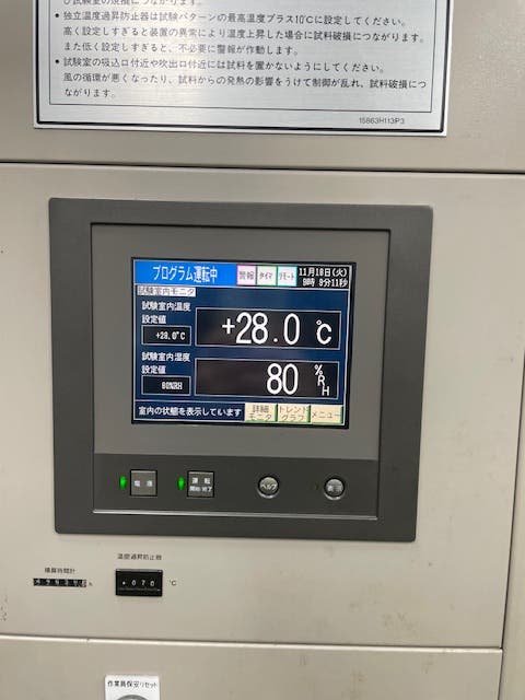 弊社の環境試験室で【室温28℃、湿度80%】の環境下で試験を実施。