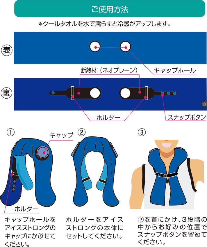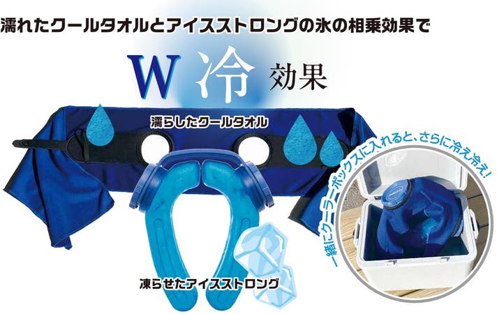 結露した水分を気にすることなく、アイスストロング&タオルのW冷却効果で真夏でも快適に!