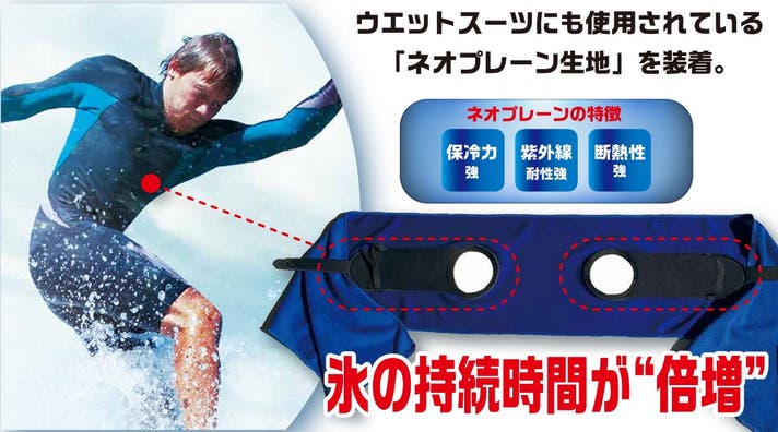 ネオプレーン(ウェットスーツ)生地採用で氷が溶ける要因の「暖かい空気」「直射日光」をシャットアウト!