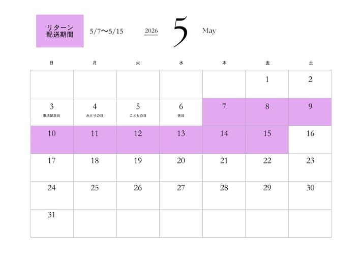 ※商品の入庫状況によりリターン配送期間が前後する可能性があります。