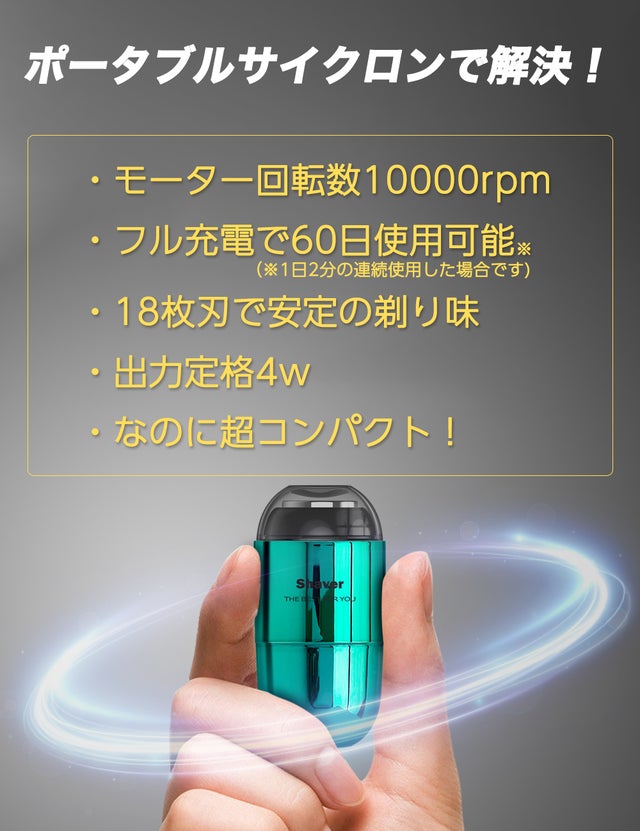 今回掲載させて頂いた〈ポータブルサイクロン〉は、コンパクトなので携帯しやすく、パワフルな剃り心地で身だしなみにも自信がもてると思っております。