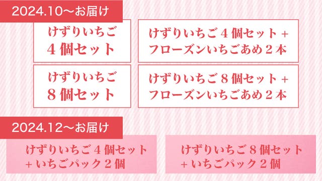 (いちごあめセット、いちごパックセットをお申込みの方は2024年12月以降順次お届けいたします。苺の出荷状況によりお時間をいただく場合もございます。ご了承ください。)