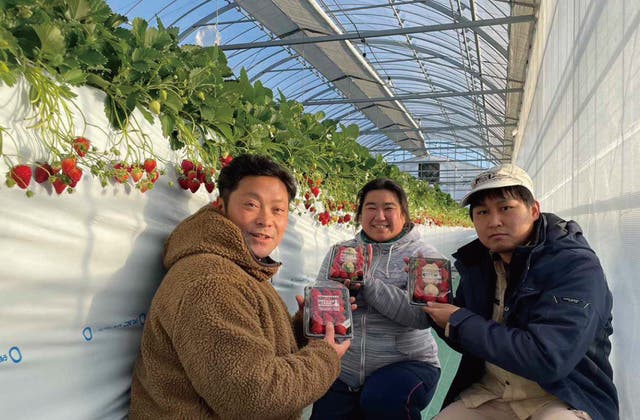 千葉県富里市で4代にわたり農業を続けてきた津田農園は、スイカやとうもろこしなどの野菜をメインで生産しており、その美味しさから地域でも大変人気があります。新事業としていちご栽培を開始するにあたり、新しく迎えたいちご担当者の方がいちご大学に入学し、全国各地のいちご農家と交流して学びながら、いちごを栽培しています。