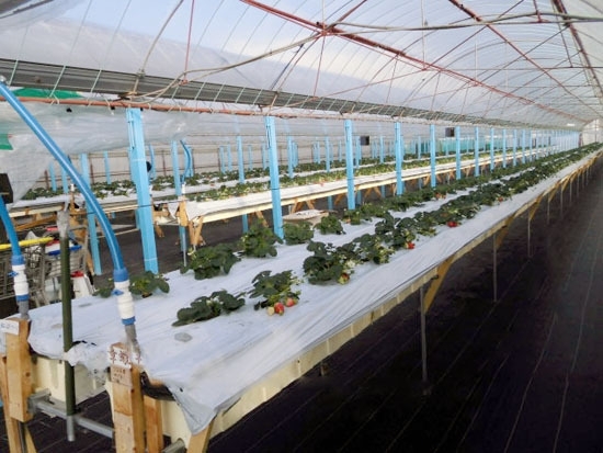 {イチゴの栽培期間はとても永く、親苗作り~小苗作り・育苗~圃場に植替え~育苗~開花結実~収穫・終了まで、十五か月を要する(一人で無理じゃー)(一人でやると言ったやないかァ)これ作業時間にするとまた凄い、二千数百時間を一人でこなすとなると休み無しでも毎日5.5時間しかも五か月間が親株作りと収穫が同時進行になるので、11時間になる、これ全て順調に上手く行ったとしての計算で、必ず病気やら害虫に見舞われること間違いなし、ここが農薬使用か、無農薬で通すかの分岐点。農薬散布なら早目に手を打てれば十アール(1000㎡)一回に一時間ほどで終わり、無農薬となると害虫の駆除で一回当たり10日は要するし10日目に最初に戻ると、もう害虫がもとのモクアミ状態になり、いたちごっこしてそのシーズン終わりに、炭疽病などに見舞われたらもうお手上げでただ神様にお祈りします}