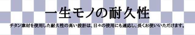 - 日本の伝統模様「市松紋様」を、チタン加工と陽極酸化技術で再現。軽量かつ高い耐久性を誇ります。